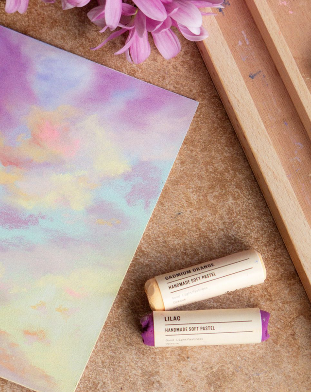 En fonction de l'éclairage, les pigments des pastels tendres peuvent apparaître plus ou moins foncés ou lumineux en raison de la matière même du médium. Les couleurs réelles peuvent donc être légèrement différentes des teintes perçues sur votre écran.