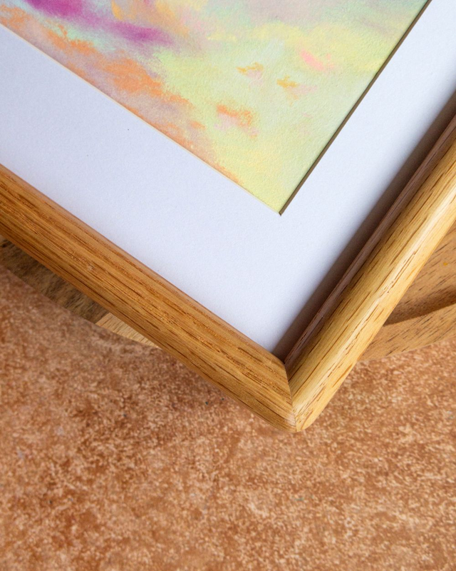 🖼 ENCADREMENT : Cadre en bois naturel de chêne, avec support et crochet mural. Vitre en verre trempé. L'encadrement inclut le placement d'un passe-partout entre le dessin et la vitre afin que cette dernière n'endommage pas l'oeuvre.