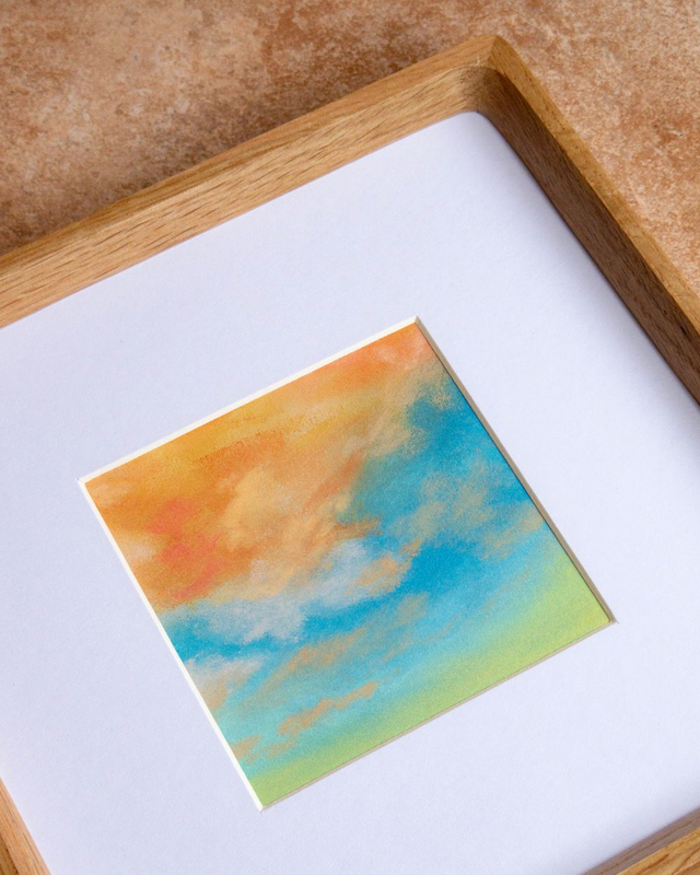 Œuvre originale, pastels tendres sur papier. Encadrement premium inclus.