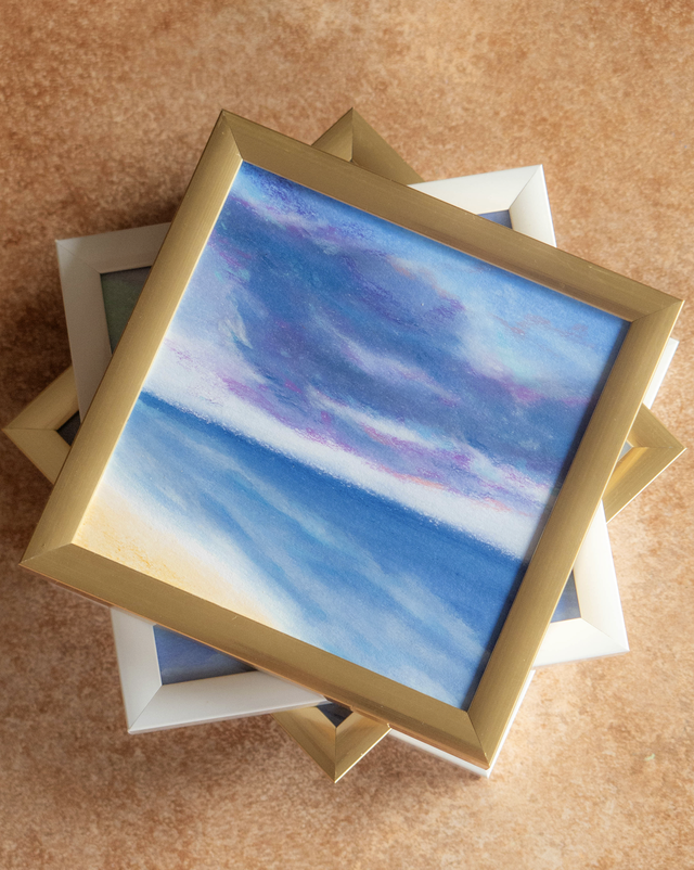 Œuvre originale encadrée, pastels à la cire sur papier (été 2025).
