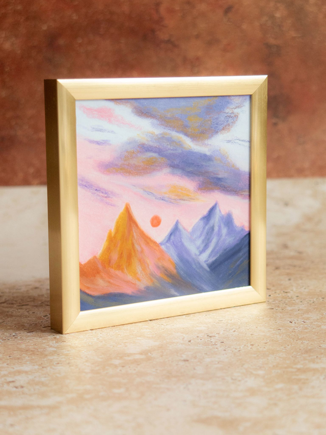 Œuvre originale encadrée, pastels à la cire sur papier (hiver 2025).