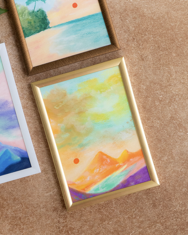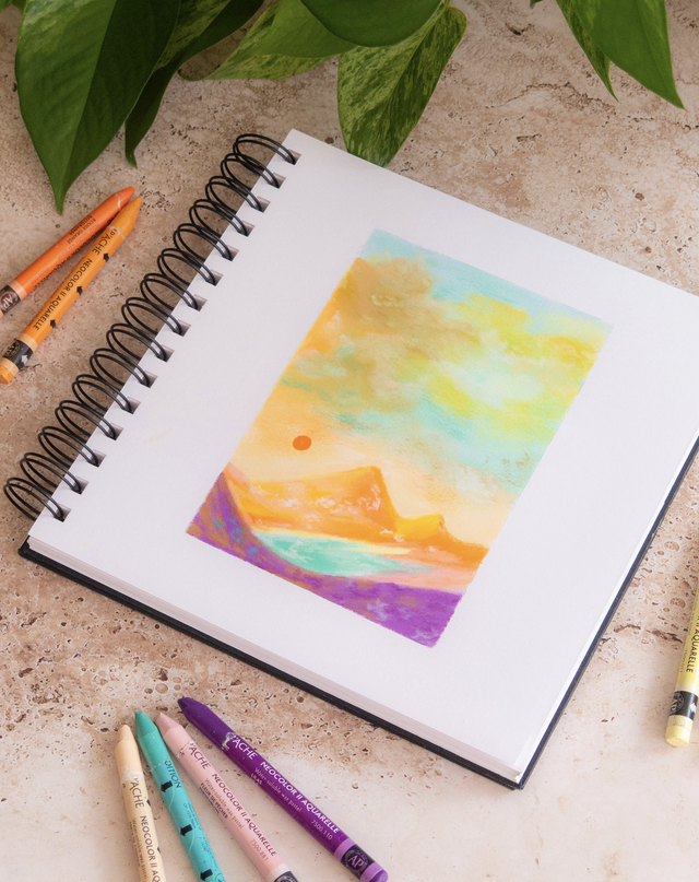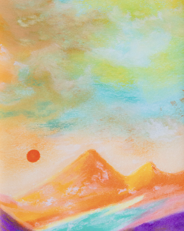 Œuvre originale encadrée, pastels à la cire sur papier (été 2025).