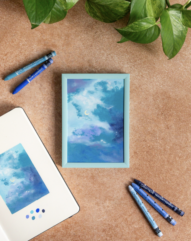 Œuvre originale encadrée, pastels à la cire sur papier (automne 2025).