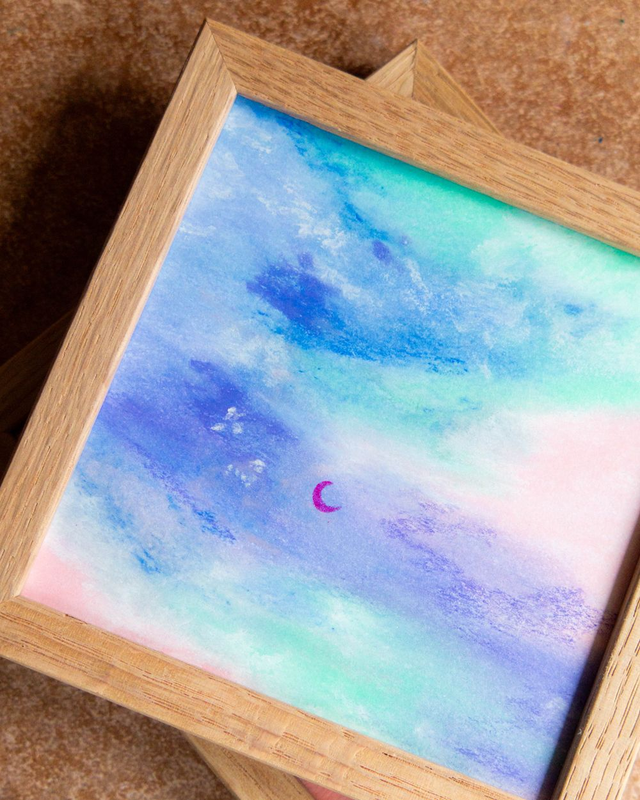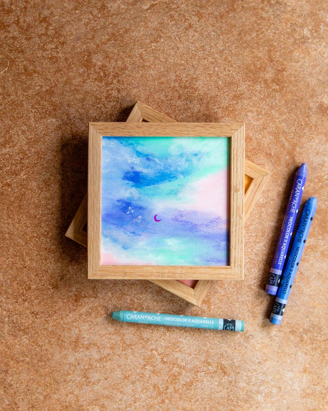 Œuvre originale encadrée, pastels à la cire sur papier (été 2025).