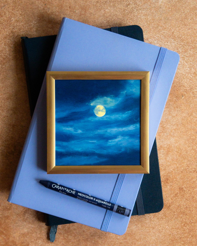 Œuvre originale encadrée, pastels à la cire sur papier (automne 2025).